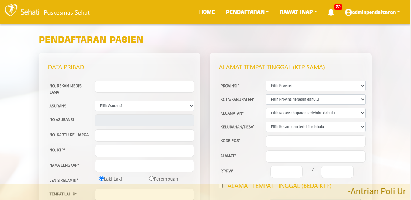 Mendaftarkan Pasien Baru dengan pengisian data pasien yang mudah dan cepat sehingga mempersingkat waktu pendaftaran kepada pasien dan mempermudah bagian administrasi pendaftaran tentunya.